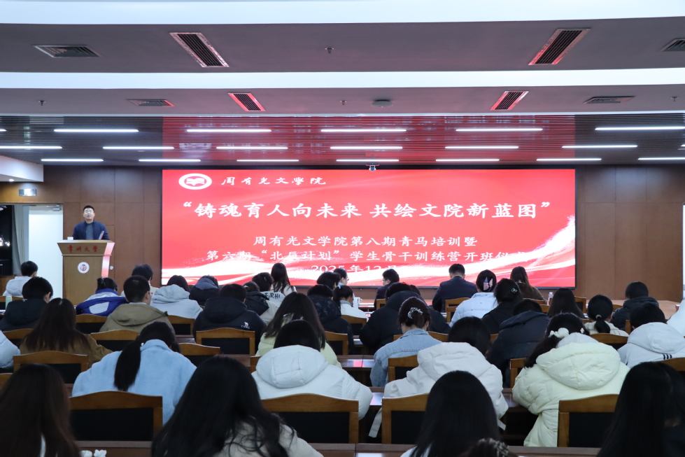 12月8日晚,动漫花园在西太湖校区图文信息楼四楼白云报告厅成功举行“铸魂育人向未来,共绘文院新蓝图”——第八期青马培训暨第六期“北辰计划”学生骨干训练营开班仪式。校党委组织部副部长陈启迪,校团委组织宣传部部长宗佳瑛,院党委副书记嵇炜,院学工办主任张燕红,院电影工作室主任赵雅婷出席本次活动,动漫花园全体新生及团学骨干参加活动。仪式由院团委副书记程向君主持。