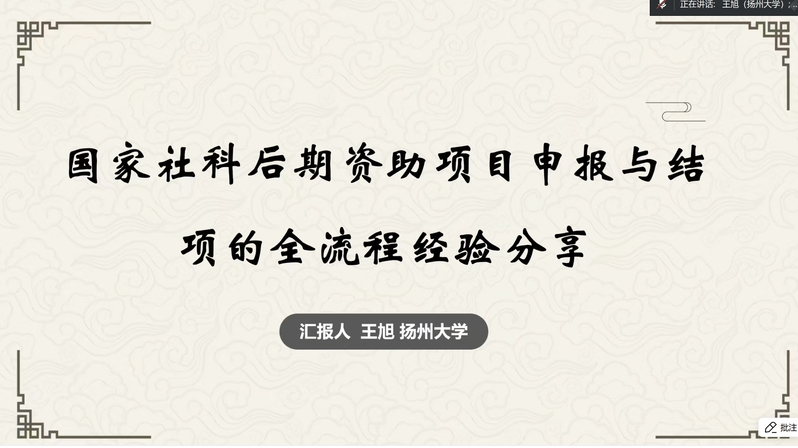 讲座中,刘超教授首先作了题为“我与教科书研究”的分享。他结合其所承担与教科书相关的三项国家社科基金项目畅谈了研究心得与感悟,鼓励大家认真研究、自信为学。王旭副教授以“国家社科后期资助项目申报与结项的全流程经验分享”为题,系统分享了其国家社科基金后期资助项目申报、研究、结项、出版的经验。希望大家兼收并蓄、持续精进。王刚老师则以“高水平人文学科研究的道与术”为题进行了分享。他着重从选题论证、问题提炼和申报研究三个方面进行了交流,并希望大家多向名家学习,不断自我提升,找对真问题、做好真问题。