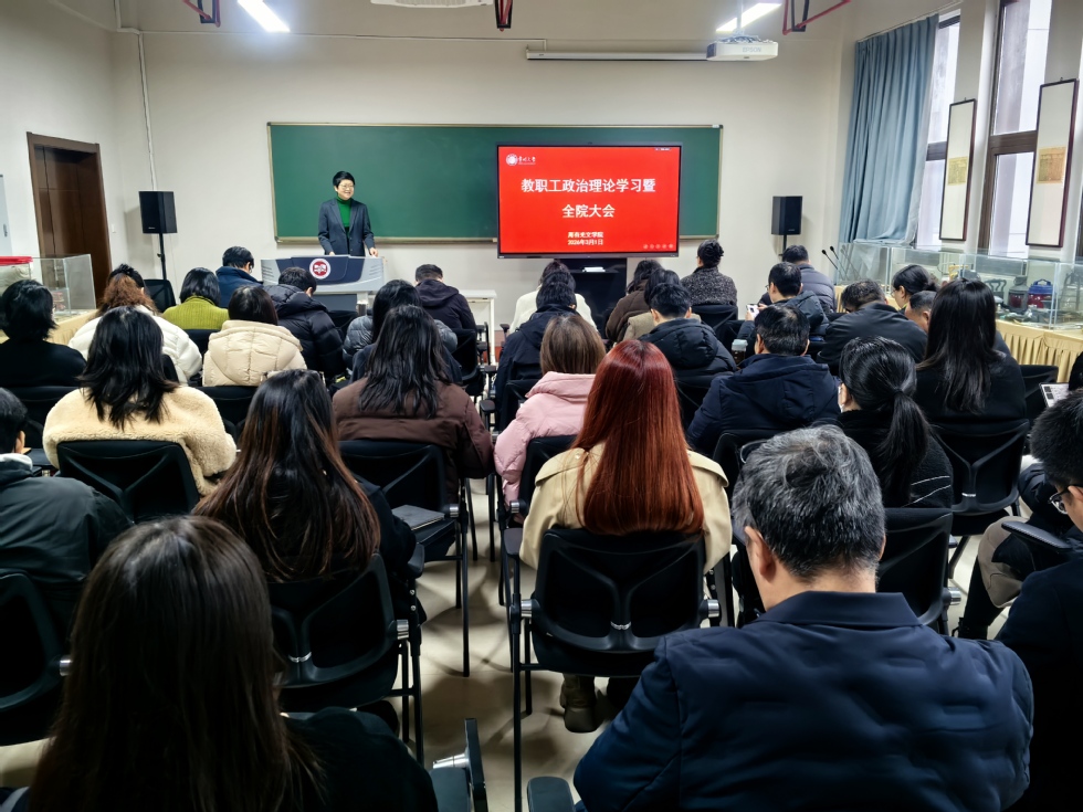 3月1日上午,动漫花园 在立言楼342室召开教职工政治理论学习暨全院教职工大会,全体领导班子出席会议,全体教师参加会议,会议由院党委书记焦洁庆主持。